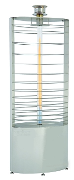 Formschöne mobile »Kuscheldecke« in anpassungsfähiger schlanker Figur — hier kommt der Kaminofeneffekt zum Einsatz. Eine Wärmeausstrahlung auf extravagante Art — Edelstahl wird zum Edelstein — »endlich warme Füße und Hände« — Frauen werden diese Art von Sonne lieben.